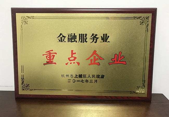 2017年3月,浙商資產榮獲上城區人民政府頒發的金融服務業重點企業獎牌。